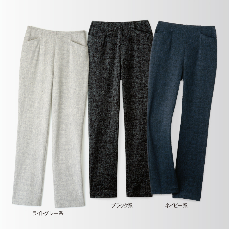 やわらかくて洗練された国産ツイードのラクラク美脚パンツ。