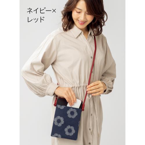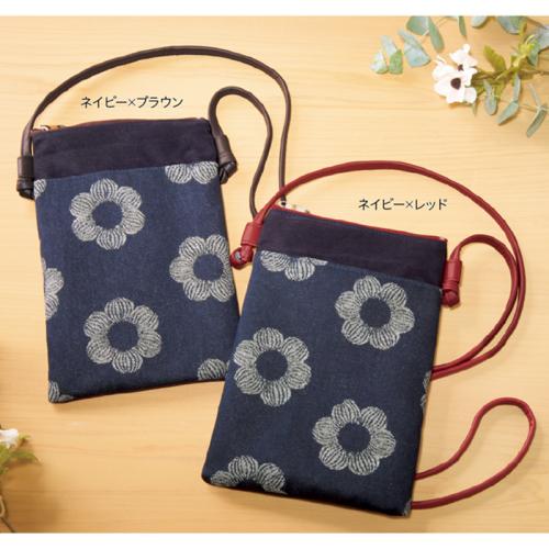 スマホと小物を入れてスマートにお出かけ。 岡山県井原産のデニムと花柄ジャカード織が素敵なミニポシェット。スマホポケットが前面にあるので出し入れしやすく、長財布も入ります。 ●サイズ(外寸・約):幅16×高さ24×厚さ1cm/スマートフォン収納可能サイズ=幅15×高さ23×厚さ1cm以内/ショルダーベルト長さ=126cm(着脱不可) ●重量(約):85g ●材質:表地(ポケット部分)=綿(ワンウォッシュデニム)/表地(無地部分)・裏地=ナイロン/ショルダーベルト=合成皮革 ●仕様:ファスナーメインコンパートメント/前面=スマホ用ポケット×1 ●日本製 ※商品の性格上、一点一点柄の出方が異なります。