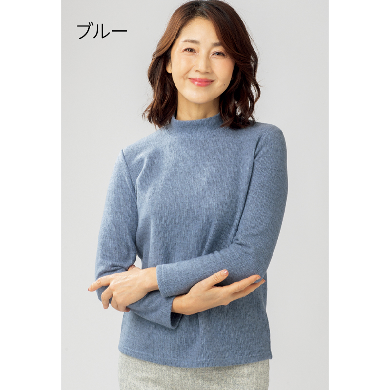 ふんわり、あったか。体型カバーもお任せです。 やわらかな起毛仕上げのプルオーバー。ニット風のさりげないストライプ生地は肌触りがよく、ストレッチ性もあるので快適な着心地です。 ●素材:ポリエステル85%、レーヨン10%、ポリウレタン5% ●洗濯機可(ネット使用) ●日本製