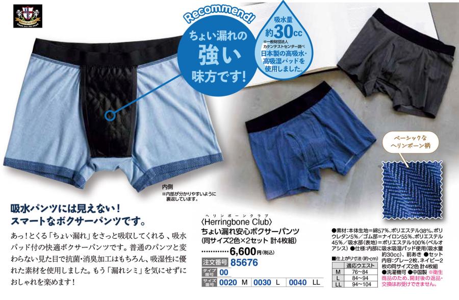 3. <Herringbone Club>ちょい漏れ安心ボクサーパンツ(同サイズ2色×2セット計4枚組)