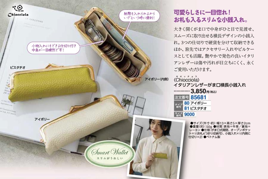 3. <Chiocciola>イタリアンレザーがま口横長小銭入れ
