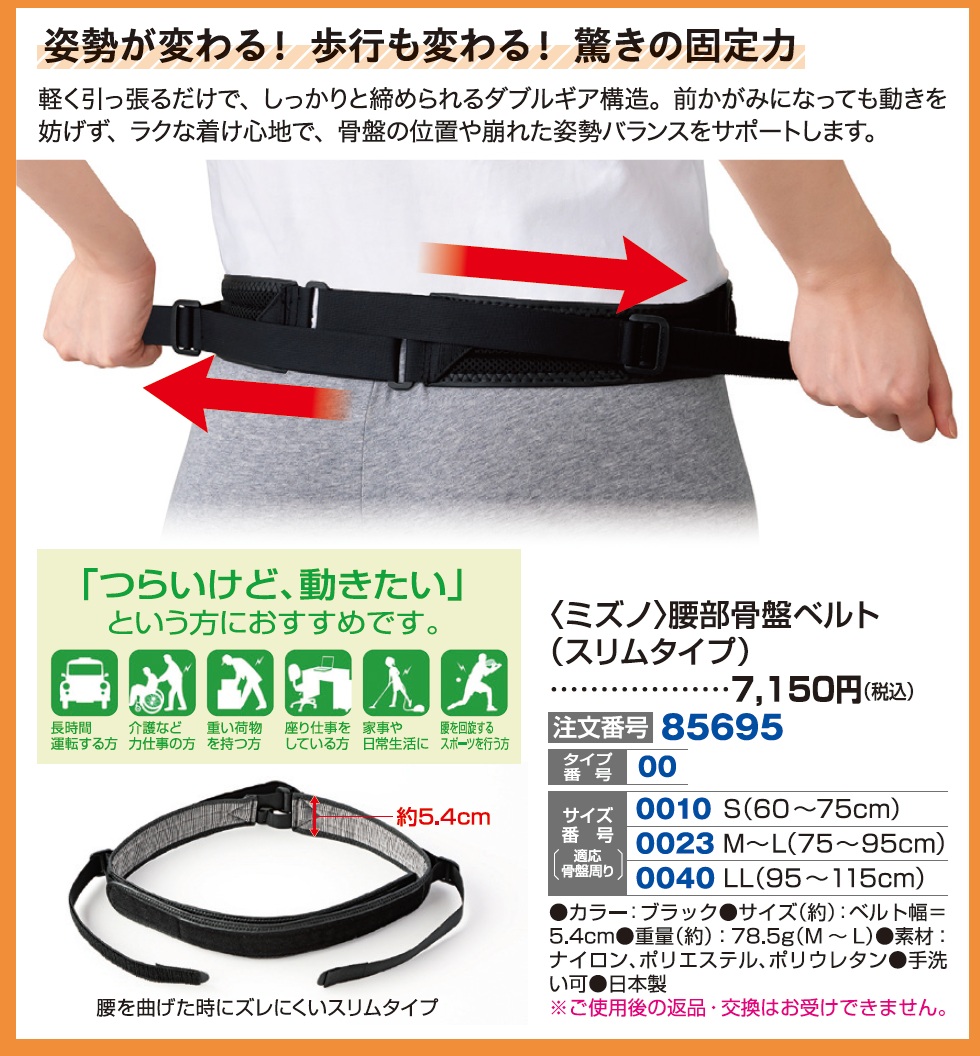 <ミズノ>腰部骨盤ベルト(スリムタイプ)