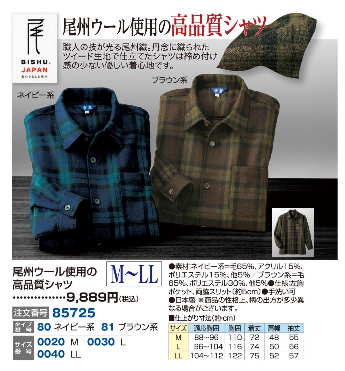 尾州ウール使用の高品質シャツ