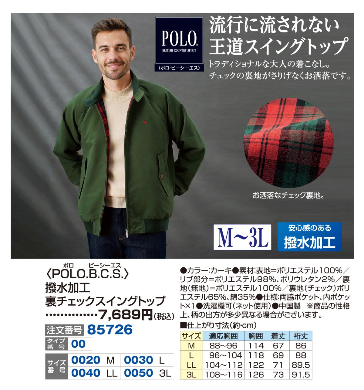 3. 〈POLO.B.C.S.〉撥水加工裏チェックスイングトップ
