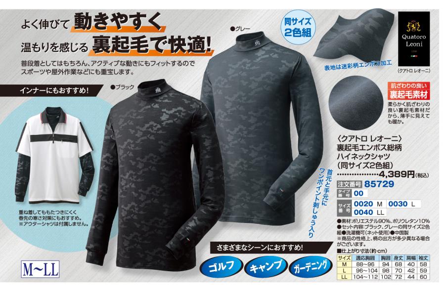 3. 〈クアトロ レオーニ〉裏起毛エンボス総柄ハイネックシャツ(同サイズ2色組)