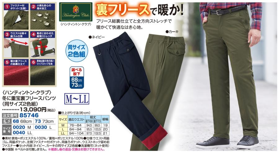 〈ハンティントン・クラブ〉冬に重宝裏フリースパンツ(同サイズ2色組)
