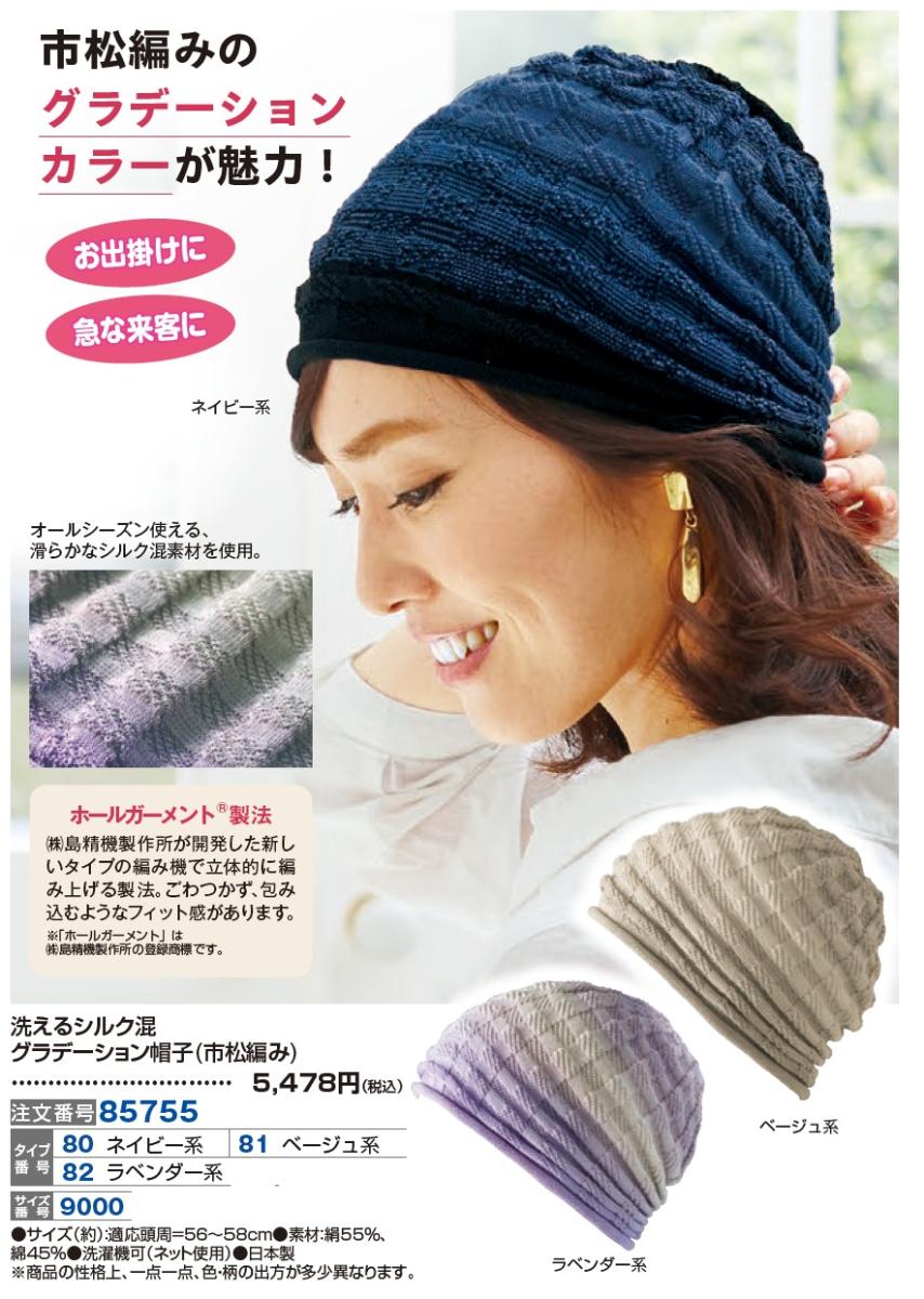 3. 洗えるシルク混グラデーション帽子(市松編み)