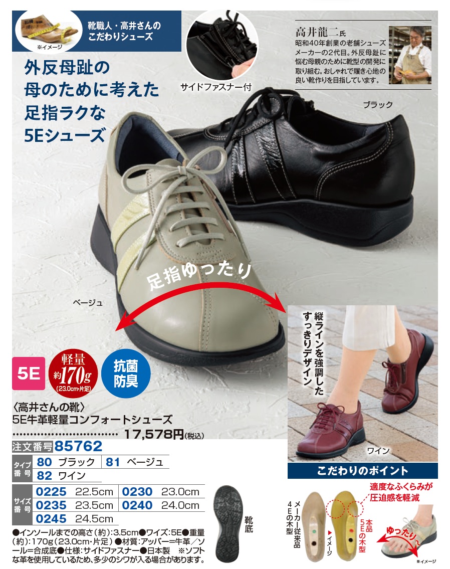 <高井さんの靴>5E牛革軽量コンフォートシューズ