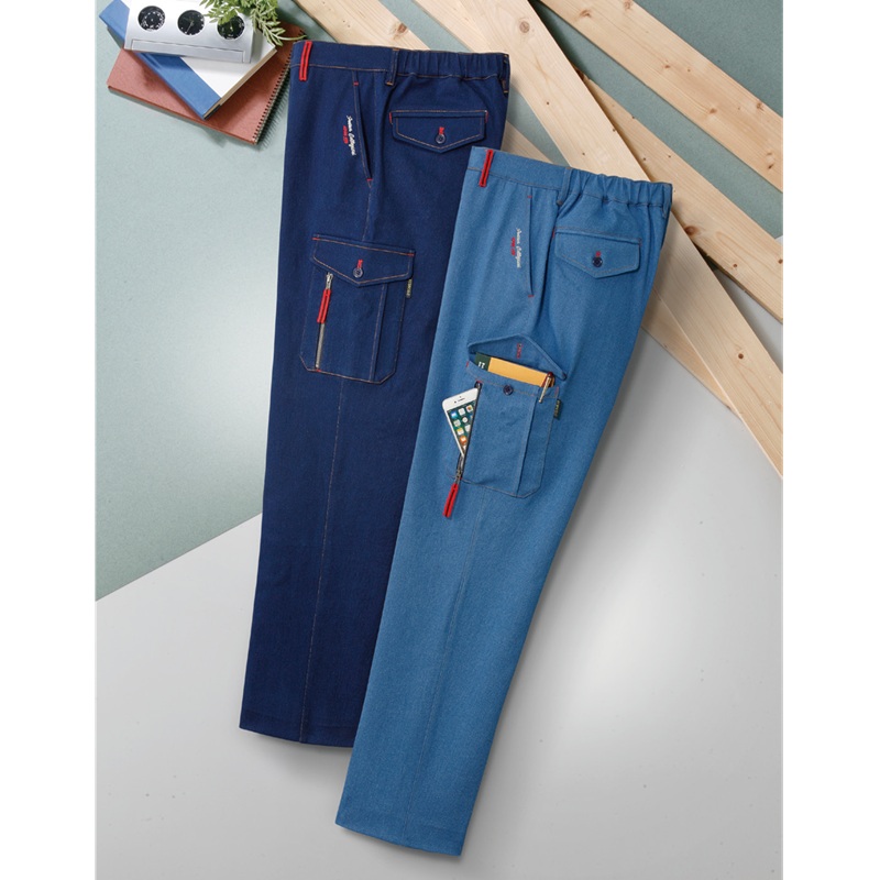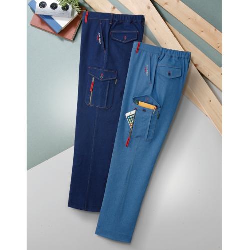 〈フランコ・コレツィオーニ〉デニム刺繍入りカーゴパンツ(同サイズ2色組)