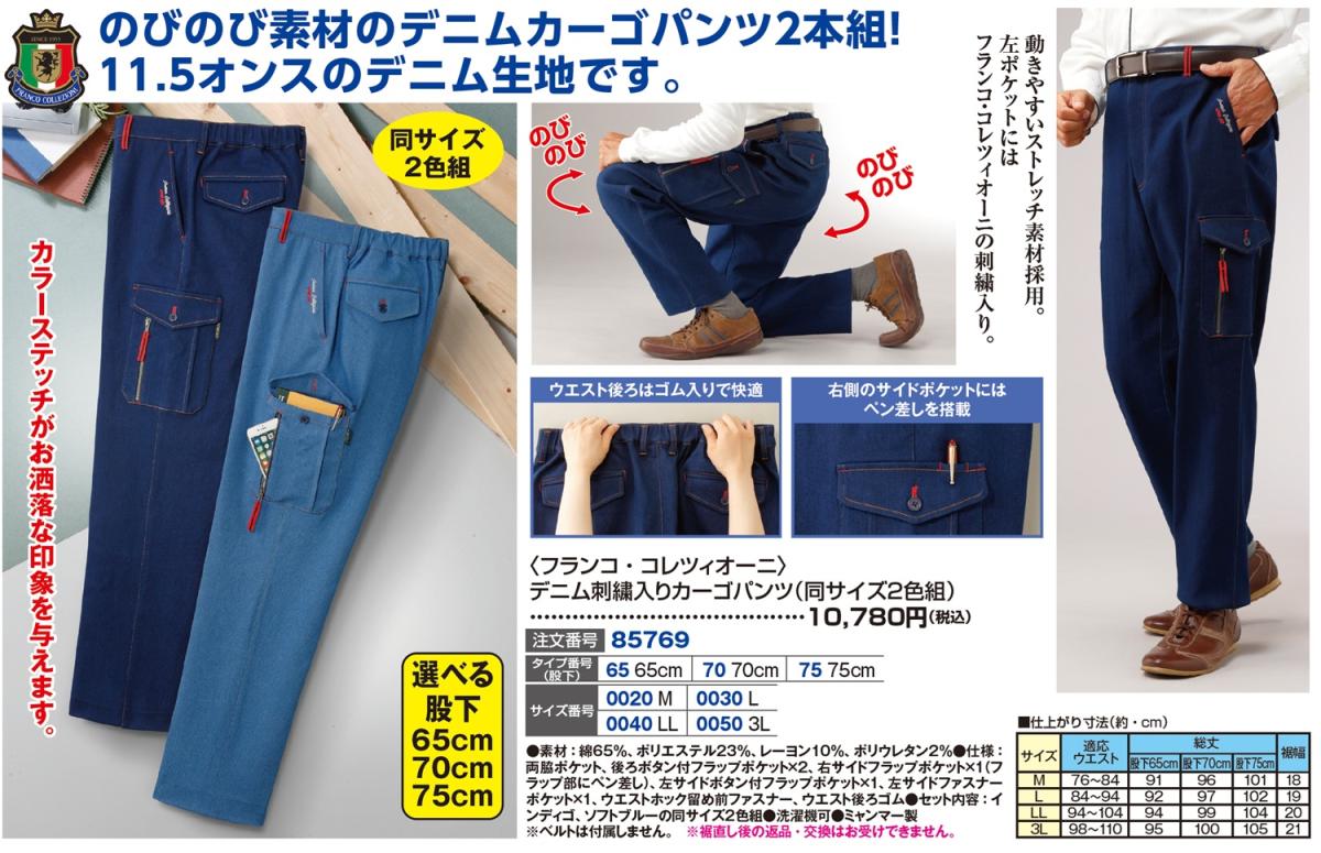 3. 〈フランコ・コレツィオーニ〉デニム刺繍入りカーゴパンツ(同サイズ2色組)