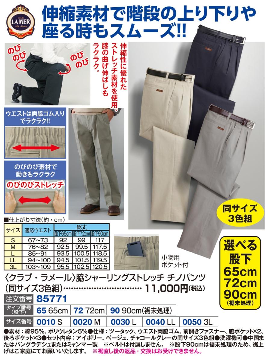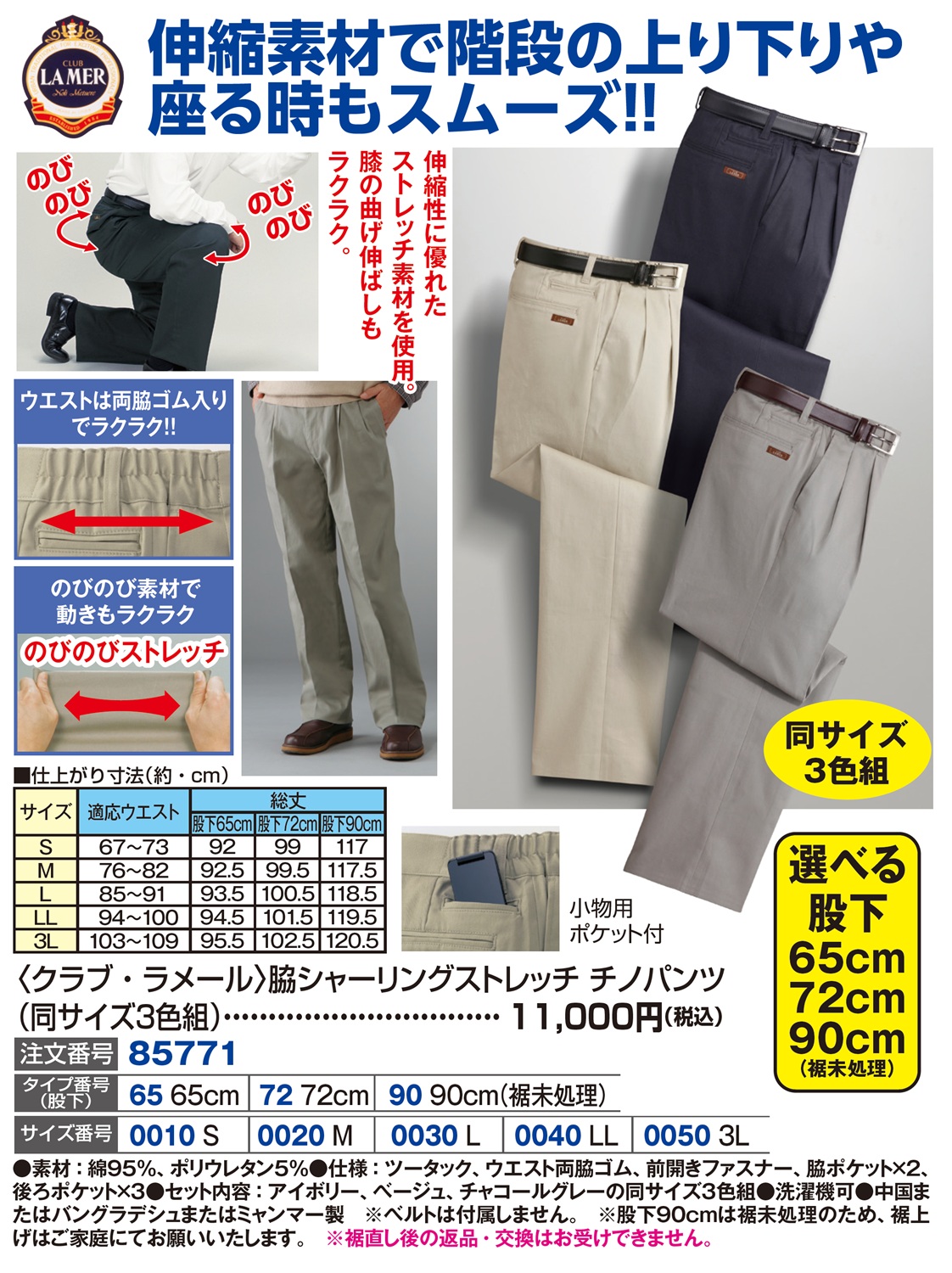 3. 〈クラブ・ラメール〉脇シャーリングストレッチ チノパンツ(同サイズ3色組)