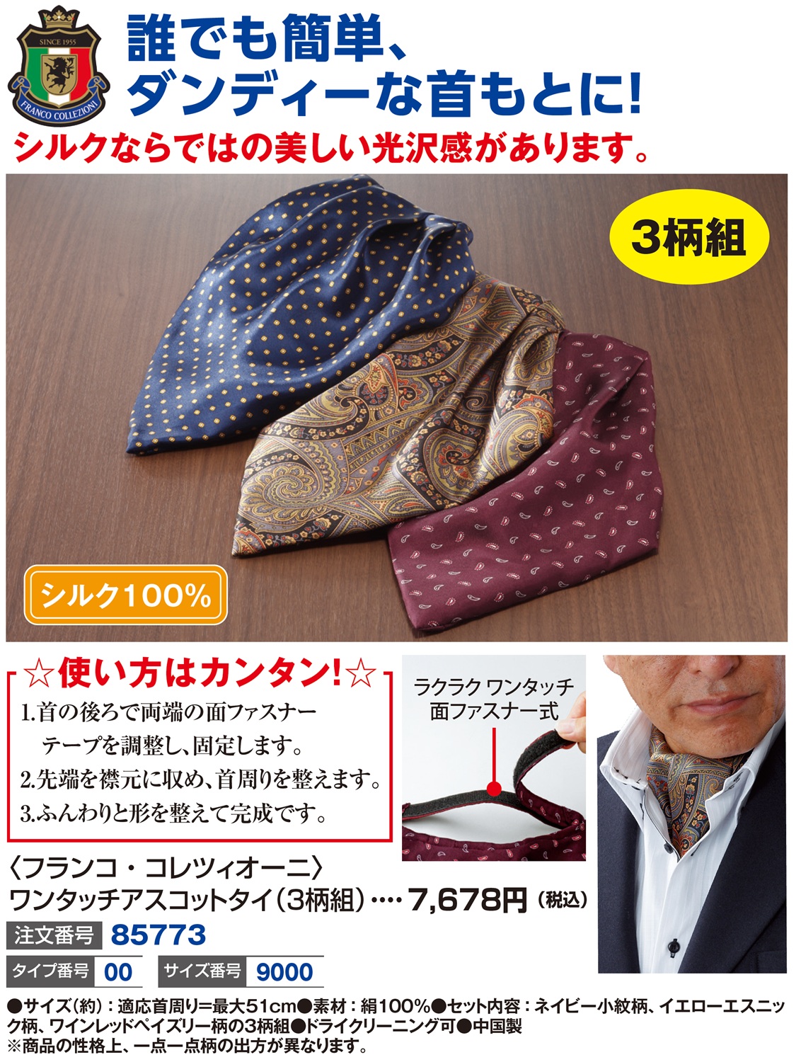 〈フランコ・コレツィオーニ〉ワンタッチアスコットタイ(3柄組)