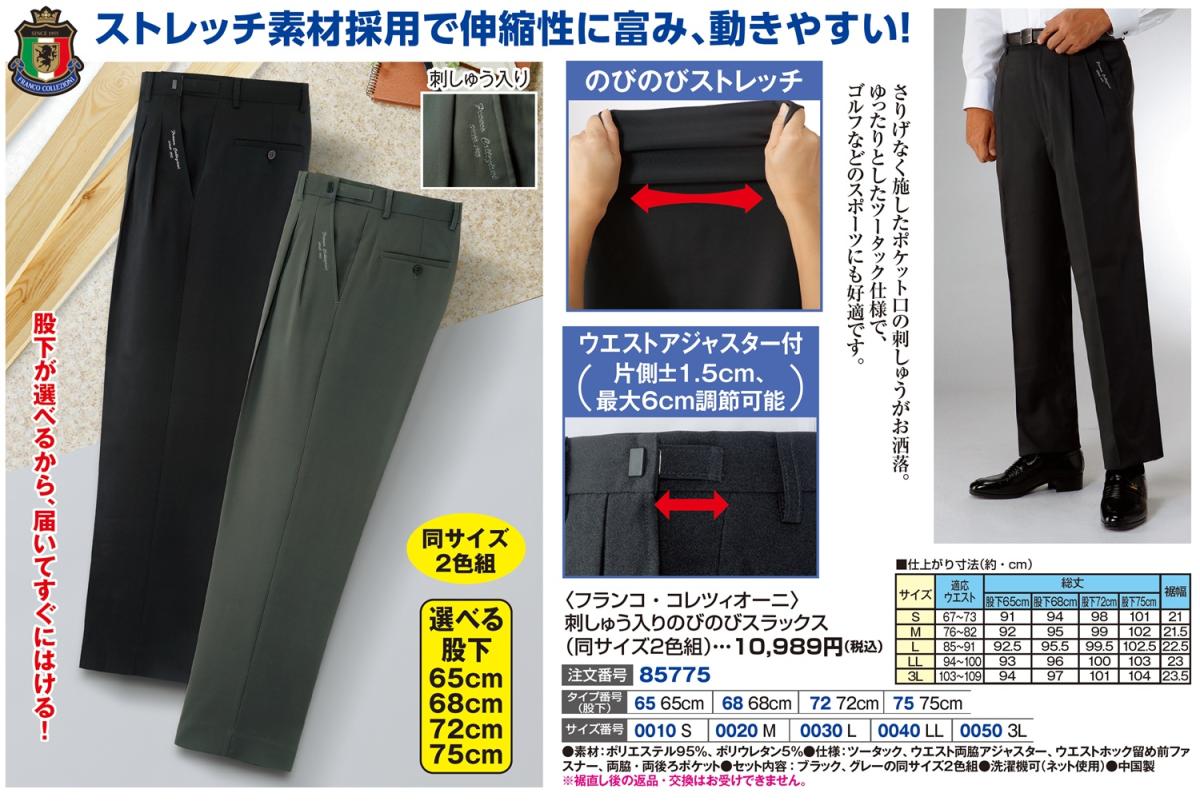 3. 〈フランコ・コレツィオーニ〉刺しゅう入りのびのびスラックス(同サイズ2色組)