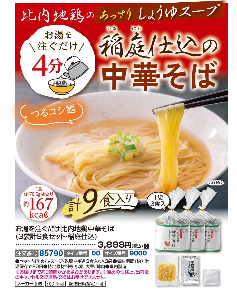 3. お湯を注ぐだけ比内地鶏中華そば(3袋計9食セット・稲庭仕込)