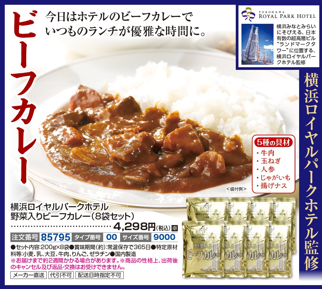 3. 横浜ロイヤルパークホテル野菜入りビーフカレー(8袋セット)