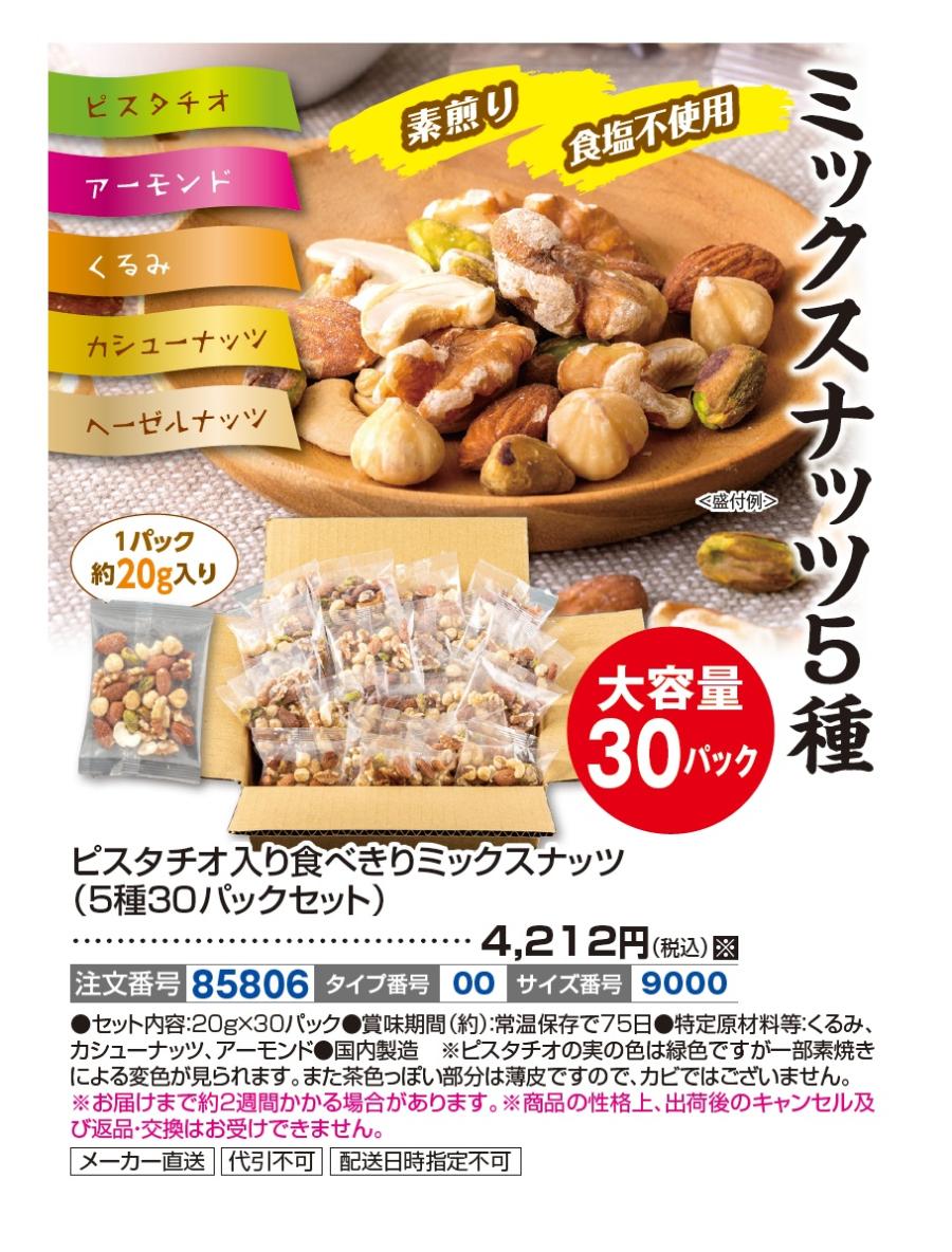 ピスタチオ入り食べきりミックスナッツ(5種30パックセット)