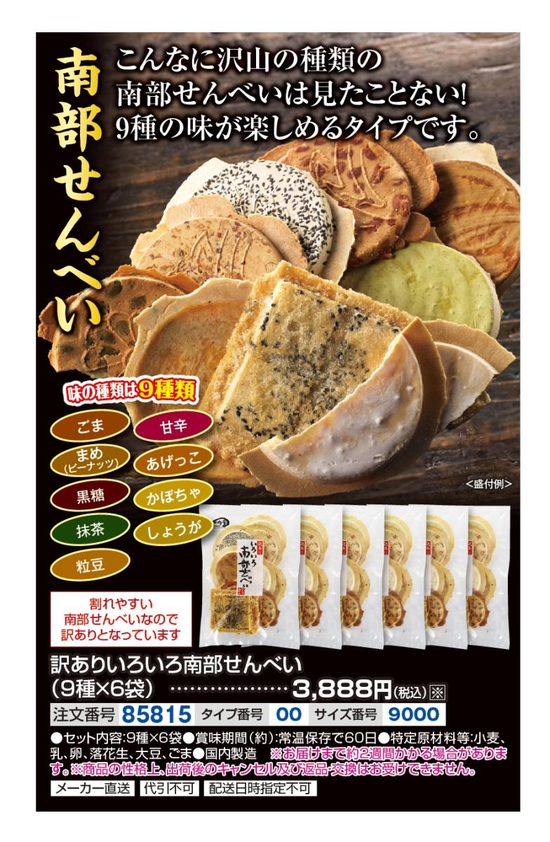 3. 訳ありいろいろ南部せんべい(9種×6袋)