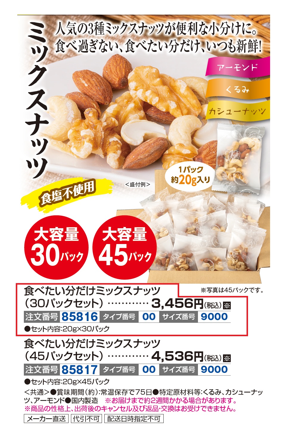 30パックセット/食べたい分だけミックスナッツ