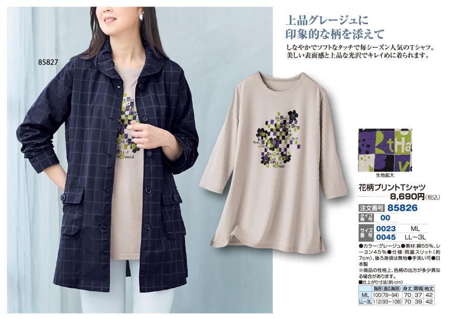 花柄プリントTシャツ