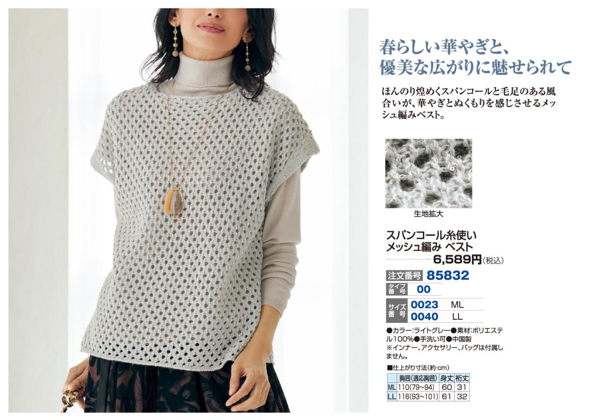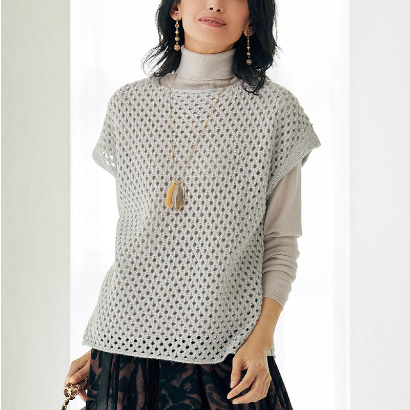 スパンコール糸使いメッシュ編みベスト
