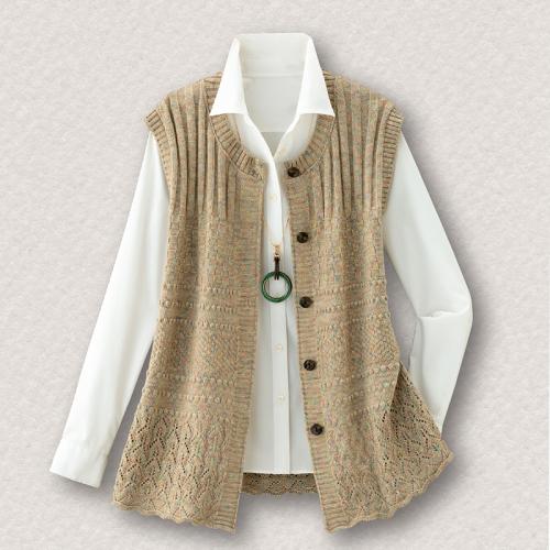 かすり編み地変化ニットベスト