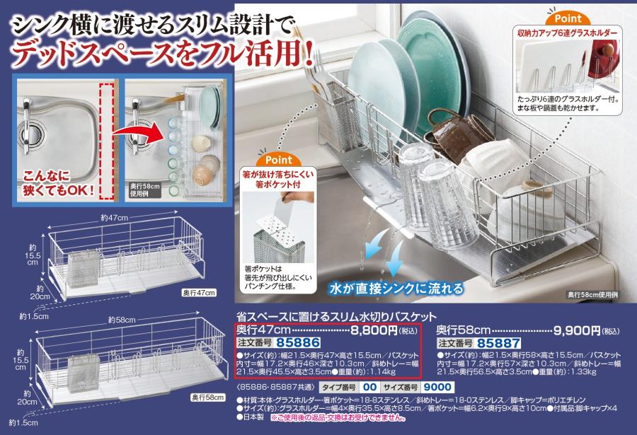 省スペースに置けるスリム水切りバスケット 奥行47cm