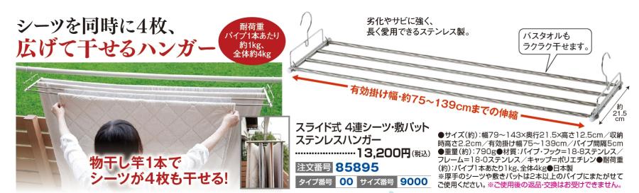 スライド式4連シーツ・敷パットステンレスハンガー