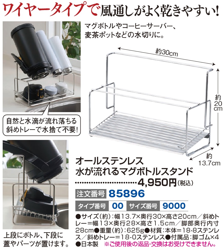 オールステンレス 水が流れるマグボトルスタンド