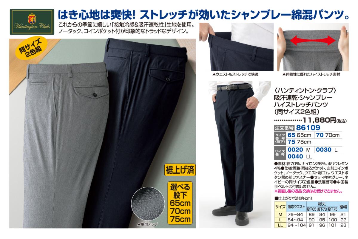3. 〈ハンティントン・クラブ〉吸汗速乾・シャンブレーハイストレッチパンツ(同サイズ2色組)