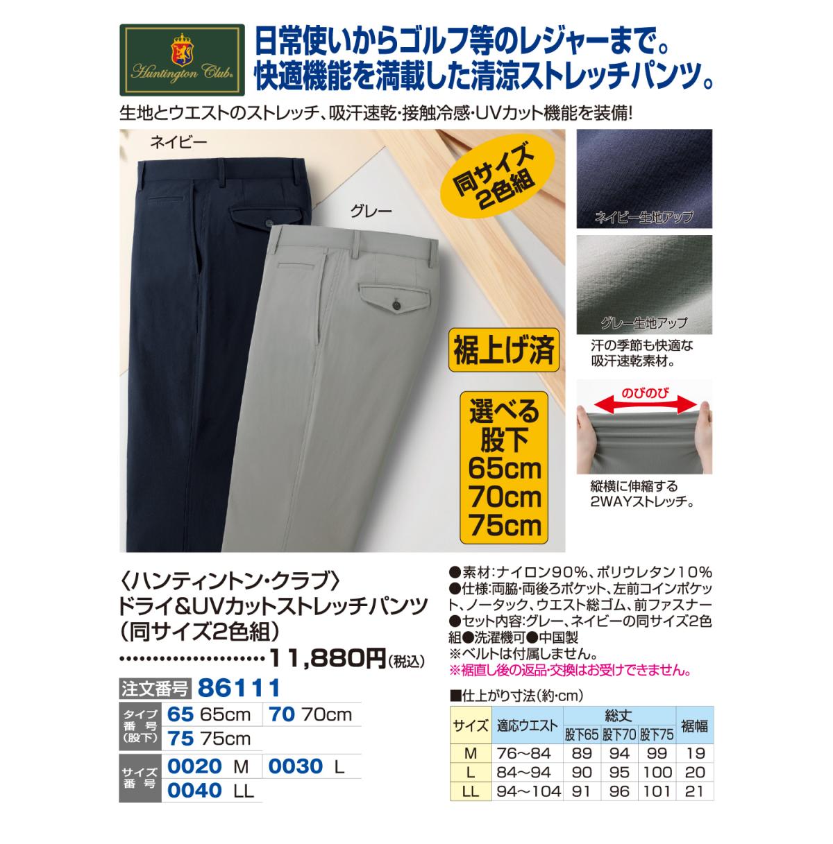 〈ハンティントン・クラブ〉ドライ&UVカットストレッチパンツ(同サイズ2色組)