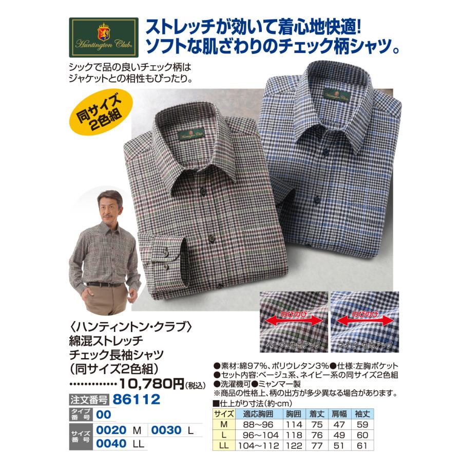 3. 〈ハンティントン・クラブ〉綿混ストレッチチェック長袖シャツ(同サイズ2色組)