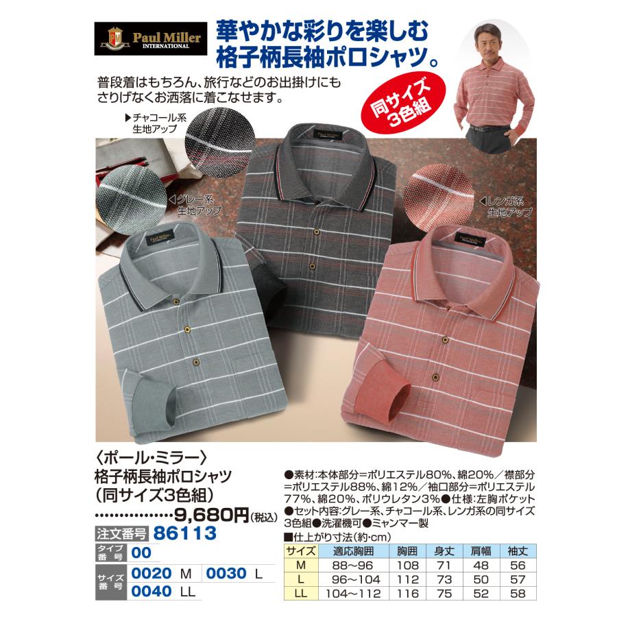 3. 〈ポール・ミラー〉格子柄長袖ポロシャツ(同サイズ3色組)