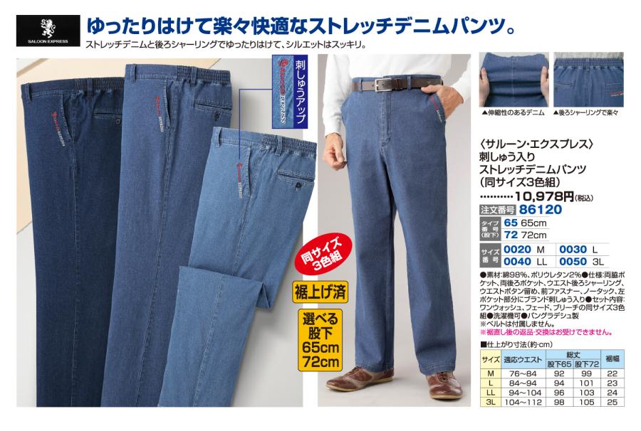 3. 〈サルーン・エクスプレス〉刺しゅう入りストレッチデニムパンツ(同サイズ3色組)