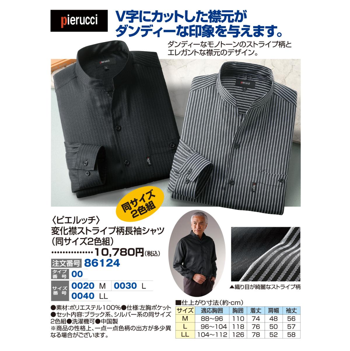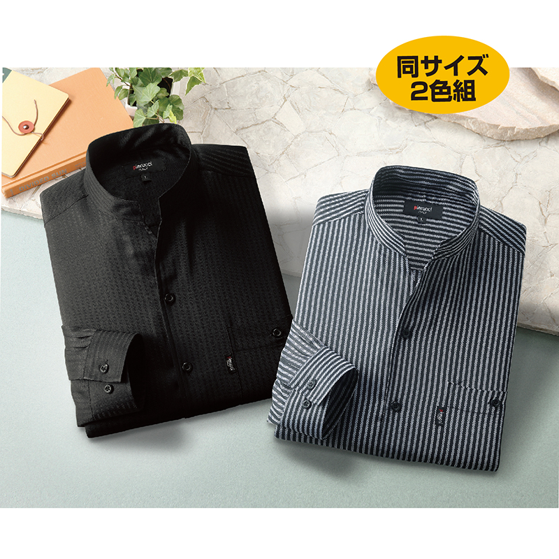 〈ピエルッチ〉変化襟ストライプ柄長袖シャツ(同サイズ2色組)