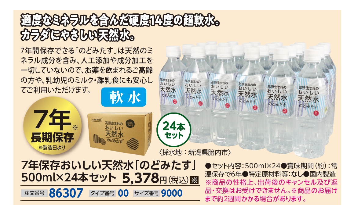 3. 7年保存おいしい天然水「のどみたす」500ml×24本セット