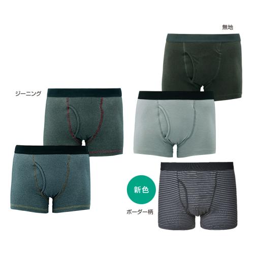 肌あたりが柔らかくトイレ後の悩みを軽減。 本体に綿混素材を採用。腰ゴムもソフトなゆったり設計。抗菌防臭加工でニオイにも対応したボクサーブリーフです。 ●セット内容:①無地(ブラック×1、グレー×1)、②ジーニング(ブラック×1、ブルー×1)、③ボーダー柄の同サイズ3柄計5枚組 ●素材:本体=①③綿95%、ポリウレタン5%、②綿80%、ナイロン15%、ポリウレタン5%/腰ゴム部(①②③共通)=ナイロン55%、ポリエステル40%、ポリウレタン5%/裏マチ部(①②③共通)=レーヨン45%、綿40%、ポリウレタン15% ●仕様:前あき ●洗濯機可 ●①=ベトナム製/②=中国製/③=タイ製 ※衛生商品のため開封後の返品・交換はお受けできません。