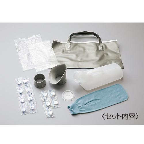 交通渋滞中にトイレに行きたい! そんなときにも便利です。 交通渋滞中の尿意、特にお子さまやお年寄りには大問題。そこでこの携帯トイレです。立ったまま、座ったままでご利用いただけます。安心の漏れ防止キャップ付でキャリングバッグで携帯できます。 ●セット内容:①本体②本体カバー③男性用受尿口④女性用受尿口⑤漏れ防止キャップ⑥消臭剤×5⑦洗浄剤×8⑧キャリングバッグ ●サイズ(約):幅11×奥行29×高さ12.5cm ●重量(約):①=120g/⑧=140g ●容量(約):1200ml ●材質:①=ポリプロピレン樹脂/②=綿/③④=EVA/⑤=ポリエチレン樹脂/⑧=PVC樹脂 ●日本製 ※衛生商品のため、ご使用後の返品・交換はお受けできません。