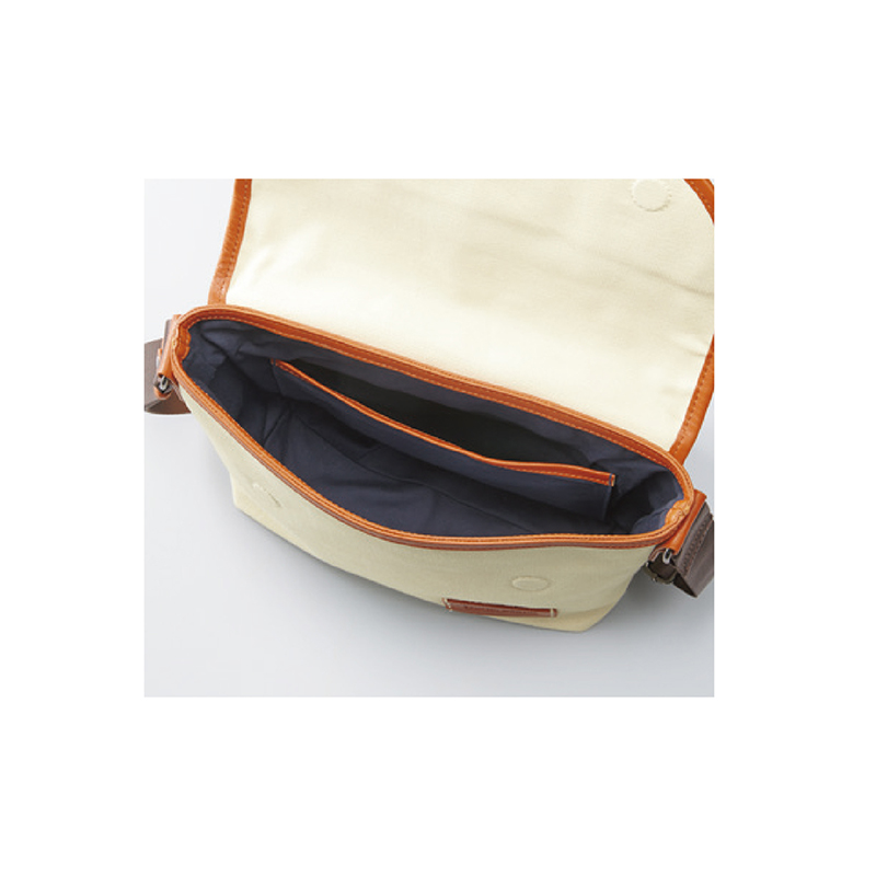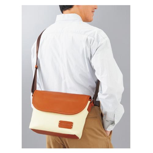 上質さと強さを併せ持ち、とっさの雨にも対応。 防水牛革と丈夫な帆布を組み合わせ、落ち着いた光沢と心地よい手触りが魅力。上質でありながら天候やシーンを選びません。必要なものがすっきり収まる収納力で、毎日の外出に気持ちよく寄り添います。 ●サイズ(外寸・約):幅30×高さ20×厚さ10cm/ショルダーベルト長さ=81~153cm(着脱不可) ●重量(約):450g ●材質:本体=牛革(防水加工)、帆布/ショルダーベルト=ナイロン ●仕様:マグホック留めフラップ付メインコンパートメント(内部にオープンポケット×1)/背面=オープンポケット×1 ●バングラデシュ製