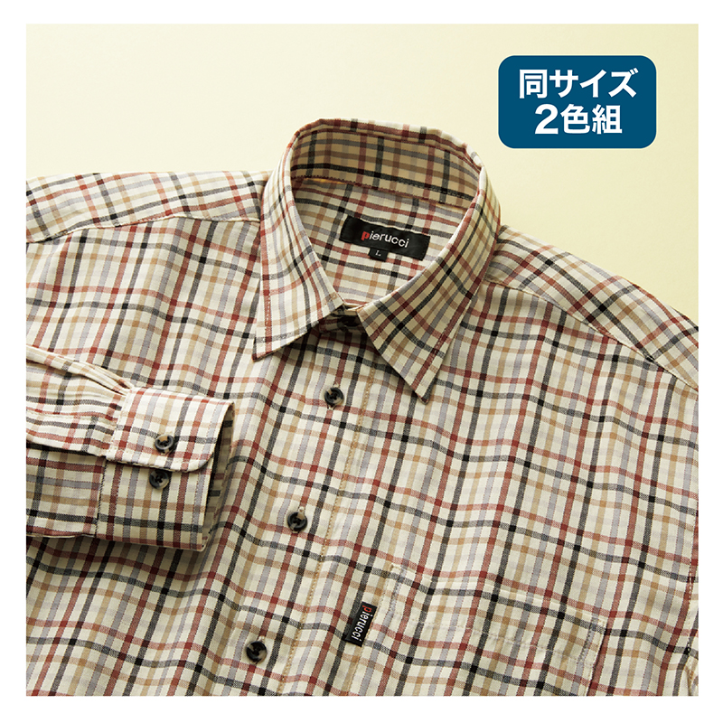 旅にも日常にも。美しさを保つ、大人のチェックシャツ。 手持ちのアイテムとも合わせやすい色合いで、気軽に羽織れるチェック柄シャツ。シワになりにくい素材で、旅行にもぴったりな2色組です。 ●素材:ポリエステル55%、綿45% ●仕様:左胸ポケット×1 ●セット内容:ブラック系、ベージュ系の同サイズ2色組 ●洗濯機可 ●中国製 ※商品の性格上、一点一点柄の出方が異なります。