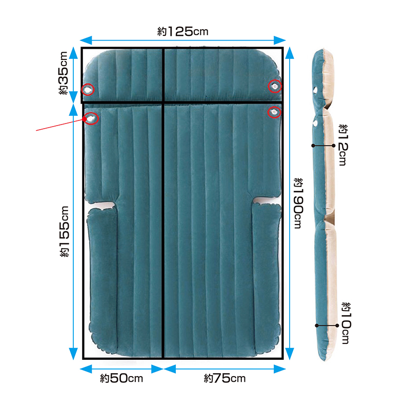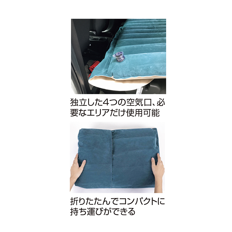 車中泊からキャンプまで、頼れるマット。 広げて電動ポンプで空気を入れれば、車内でも屋外でも快適な寝心地に早変わり。車中泊、アウトドア、キャンプはもちろん、災害時の備えとしても心強い存在です。 ●サイズ(約):使用時=幅125×長さ190×高さ12cm/収納時=幅30×奥行20×高さ14cm ●重量(約):3.3kg ●材質:PVC(表面ベロア処理)、他 ●電源:DC12V(車用シガーソケット) ●耐荷重(約):180kg ●付属品:電動ポンプ(車シガーソケット専用)、収納袋 ●中国製 ※ご使用後の返品・交換はお受けできません。