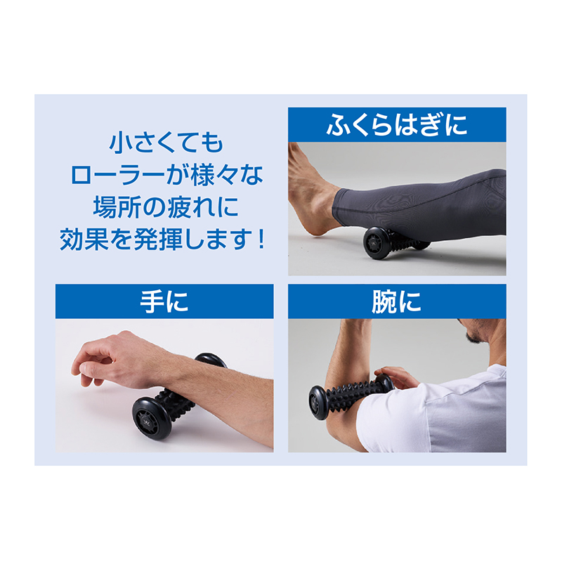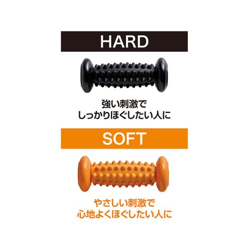 足を乗せてコロコロ。コリを心地よくほぐしてサッと疲れリフレッシュ! 足を乗せて転がすだけで疲れをリフレッシュ。立体構造の細かな凹凸が体にフィットして、コリをほぐします。自分に合った硬さを選べる2種のセットです。 ●サイズ(外寸・約):幅16.5×奥行7×高さ7cm ●重量(約):287g ●材質:ポリプロピレン、熱可塑性エラストマー、PVC、スチール ●耐荷重(約):40kg ●セット内容:ソフト(オレンジ)、ハード(ブラック)各1の計2種セット ●中国製