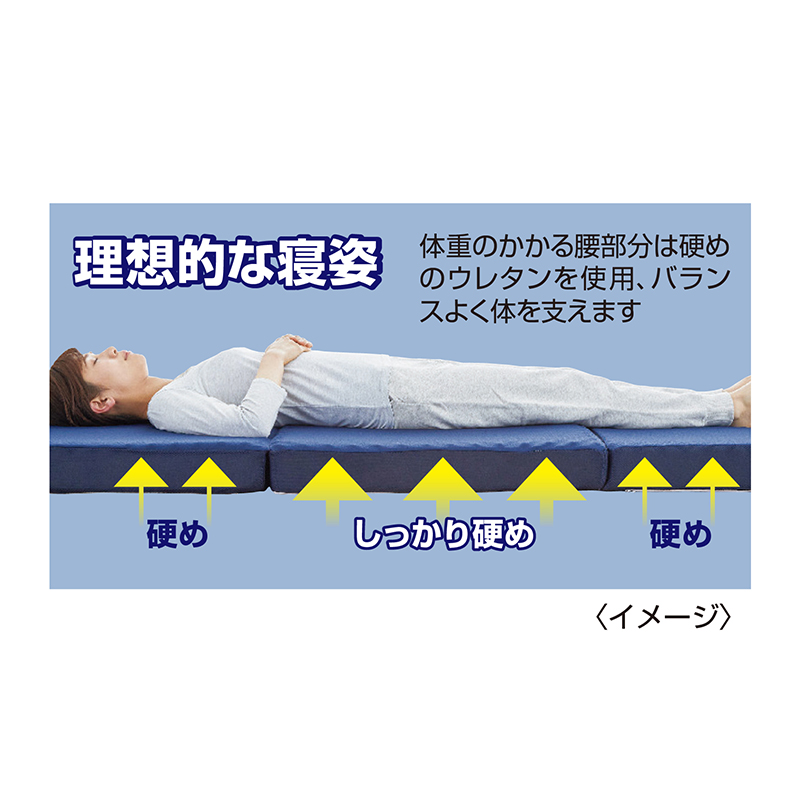腰への負担を考え抜いた、自然な寝姿勢をあなたに。 部位ごとに硬さを変えた三分割構造を採用。沈み込みすぎず、反りすぎず、自然な寝姿勢を保ちやすい設計で、腰まわりの負担をやわらげたい方にもうれしい構造です。毎日の眠りがもっと快適に、あなたの腰に寄り添う一枚です。 ●カラー:ブルー ●サイズ(約):幅120×奥行195×高さ10cm ●重量(約):7.4kg ●材質:側地=ポリエステル100%/中材=ウレタンフォーム ●カバーのみ洗濯機可(ネット使用) ●中国製 ※お届けまで約2週間かかる場合があります。