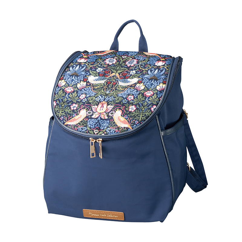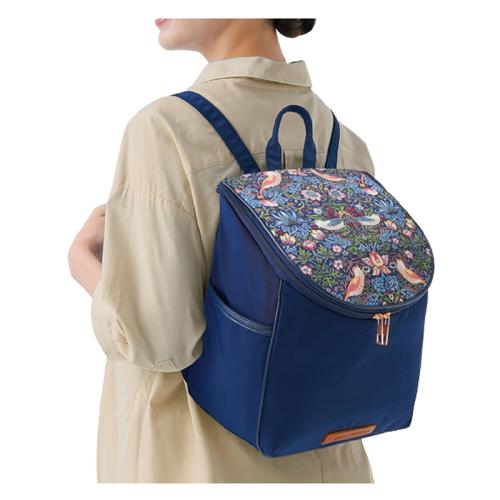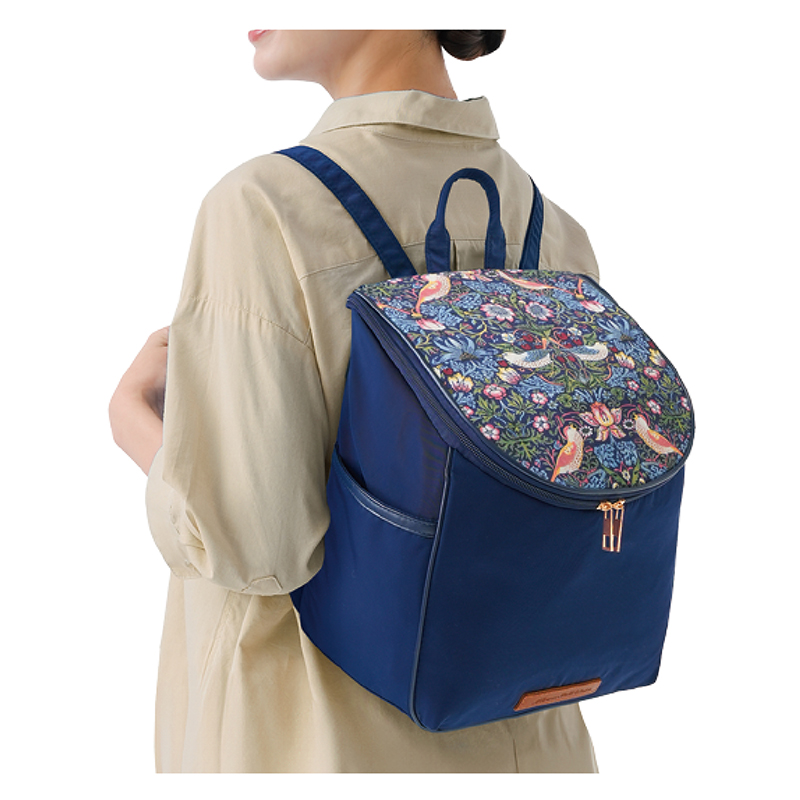 中身が見やすく、荷物が取り出しやすい大人のリュック。 ウィリアム・モリスの人気柄「いちご泥棒」がリュックで登場。広めのマチで小物類をスッキリ整頓できます。 ●カラー:ネイビー ●サイズ(外寸・約):幅28×高さ29.5×厚さ20cm/持ち手高さ=6cm ●重量(約):280g ●材質:本体=ポリエステル100%/テープ部=ポリプロピレン100%/パイピング部=合成皮革 ●仕様:ダブルファスナーメインコンパートメント(内部にファスナーポケット×1、オープンポケット×2)/側面=オープンポケット×2/背面=ファスナーポケット×1 ●中国製 ※商品の性格上、一点一点柄部分の出方が異なる場合があります。