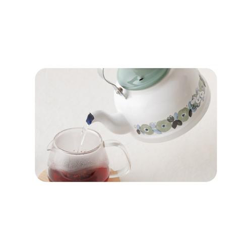 北欧風のパステルカラーの花柄でキッチンを楽しく。 世界中で愛され続けるムーミンの世界観。使いやすい1.6Lサイズのケトルが登場。ガスコンロ・IH対応のホーロー製です。●カラー:ホワイト×グリーン系 ●サイズ(外寸・約):幅20.5×奥行16×高さ20cm ●重量(約):770g ●満水容量(約):1.6L ●材質:本体・蓋=ほうろう用鋼板/持ち手=天然木/蓋つまみ=天然木 ●仕様:ガスコンロ、IH 調理器使用可 ●タイ製 ※ご使用後の返品・交換はお受けできません。