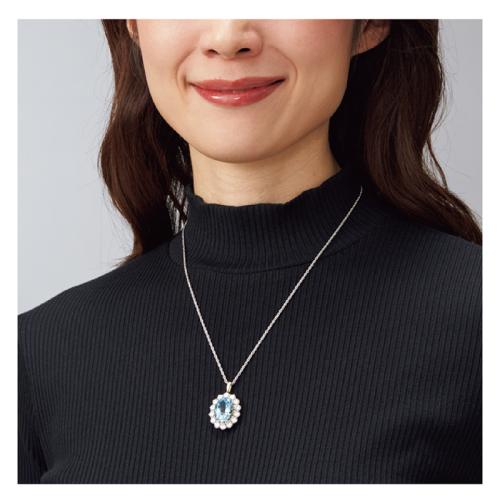 南国のラグーンのような澄んだブルー。視線を集める10ctの輝き。 半貴石の中でも特に人気の高いブルートパーズ。希少な大粒サイズで圧巻の存在感。胸元を華やかさに彩ります。インドの研磨工場に特注することで、よりお求めしやすく、高品質なものを揃えました。 ●サイズ(約):トップ=縦32×横20×厚さ8.5mm/チェーン=長さ50cm ●重量(約):11g ●材質:本体=ブルートパーズ(10ct)×1、キュービックジルコニア×14、シルバー925/チェーン=真鍮 ●留め具:引き輪式 ●日本製(ブルートパーズ加工地=インド) ※商品の性格上、一点一点色・風合い等が異なります。