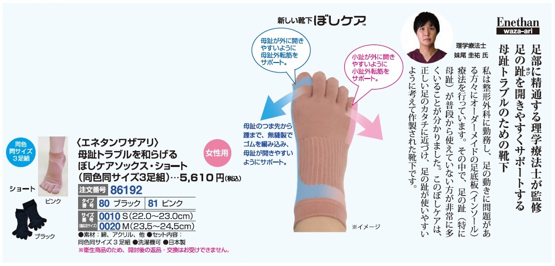 <エネタンワザアリ>母趾トラブルを和らげるぼしケアソックス・ショート(同色同サイズ3足組)