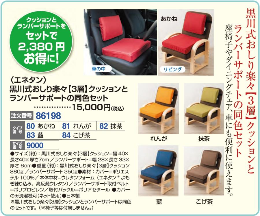 3. <エネタン>黒川式おしり楽々【3層】クッションとランバーサポートの同色セット