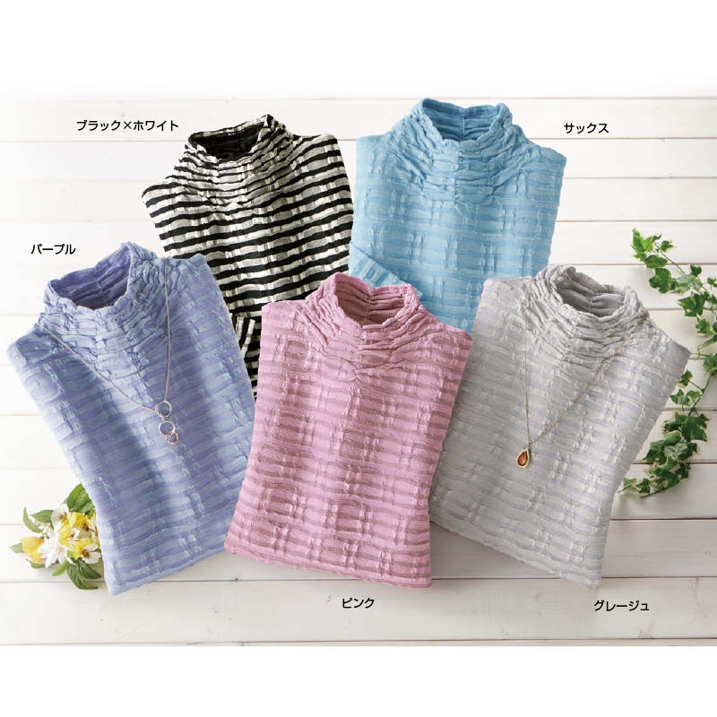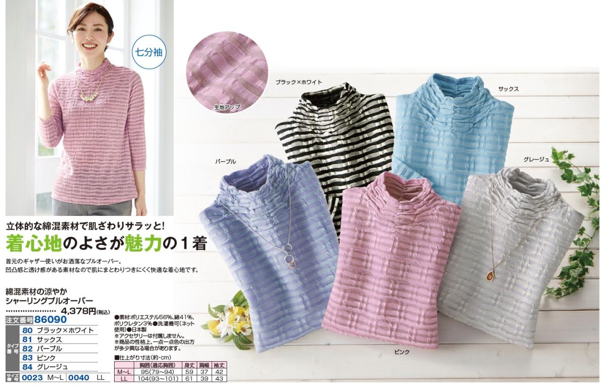綿混素材の涼やかシャーリングプルオーバー