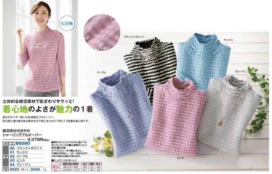 3. 綿混素材の涼やかシャーリングプルオーバー