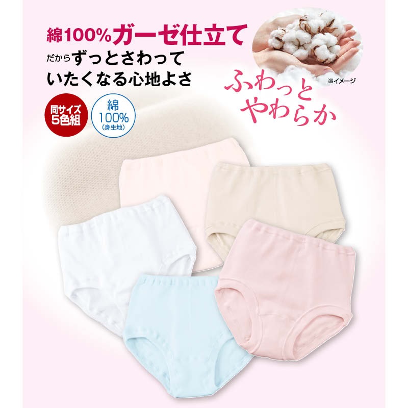 M・L・LLサイズ/綿100%ソフトガーゼショーツ(同サイズ5色組)